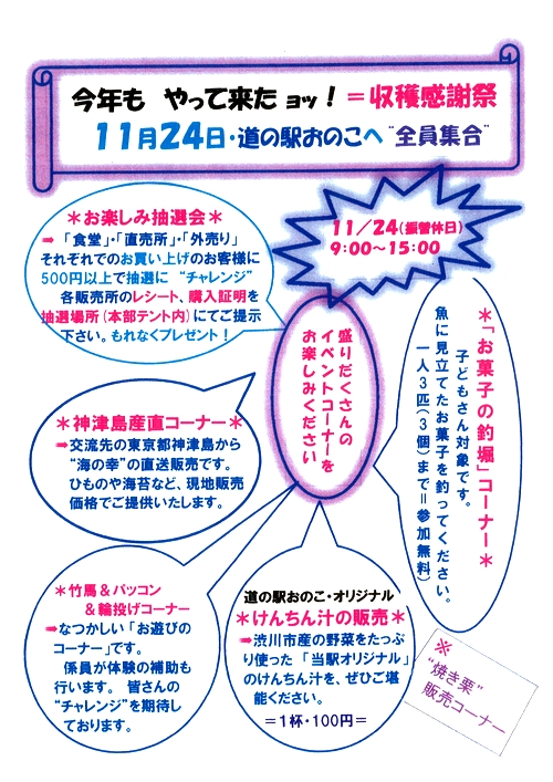 上毛新聞に道の駅おのこ収穫祭イベントが掲載されました