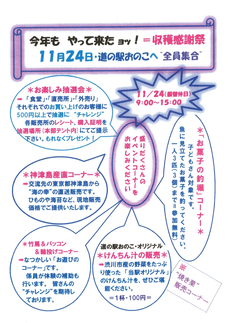 収穫感謝祭 開催のお知らせ 【開催終了】