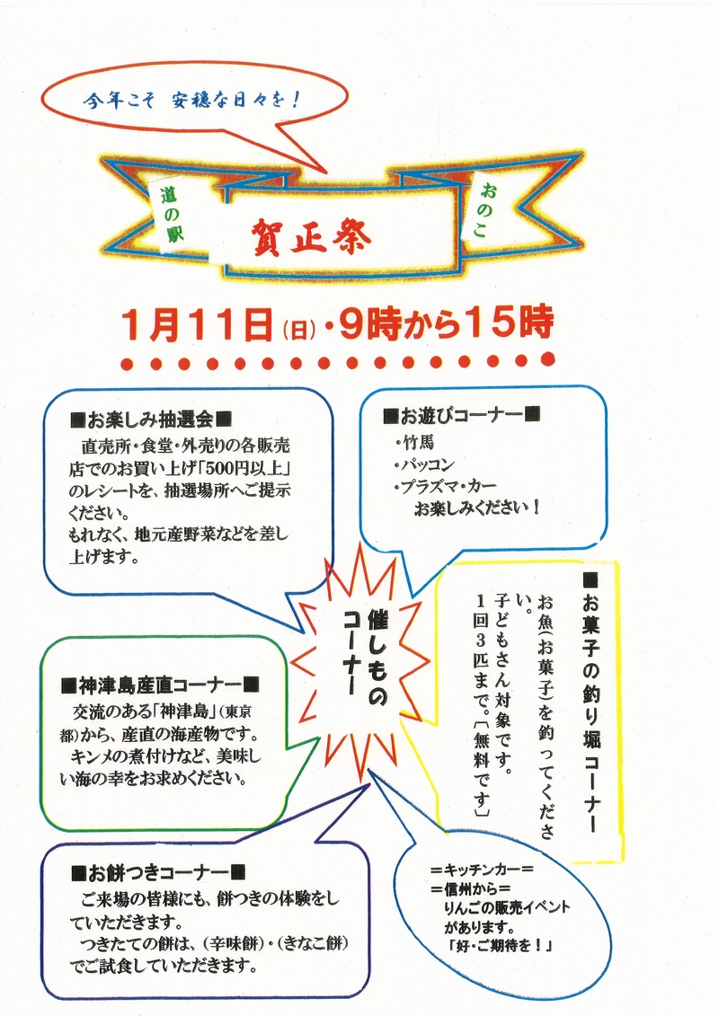 楽しいイベントいっぱい!ぜひ”道の駅おのこ”へお越しください。